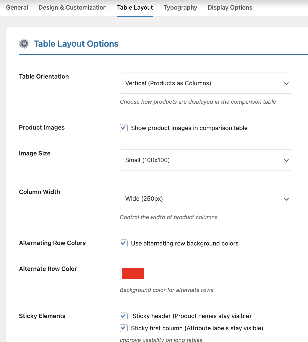 - ✅ Alternating row colors toggle