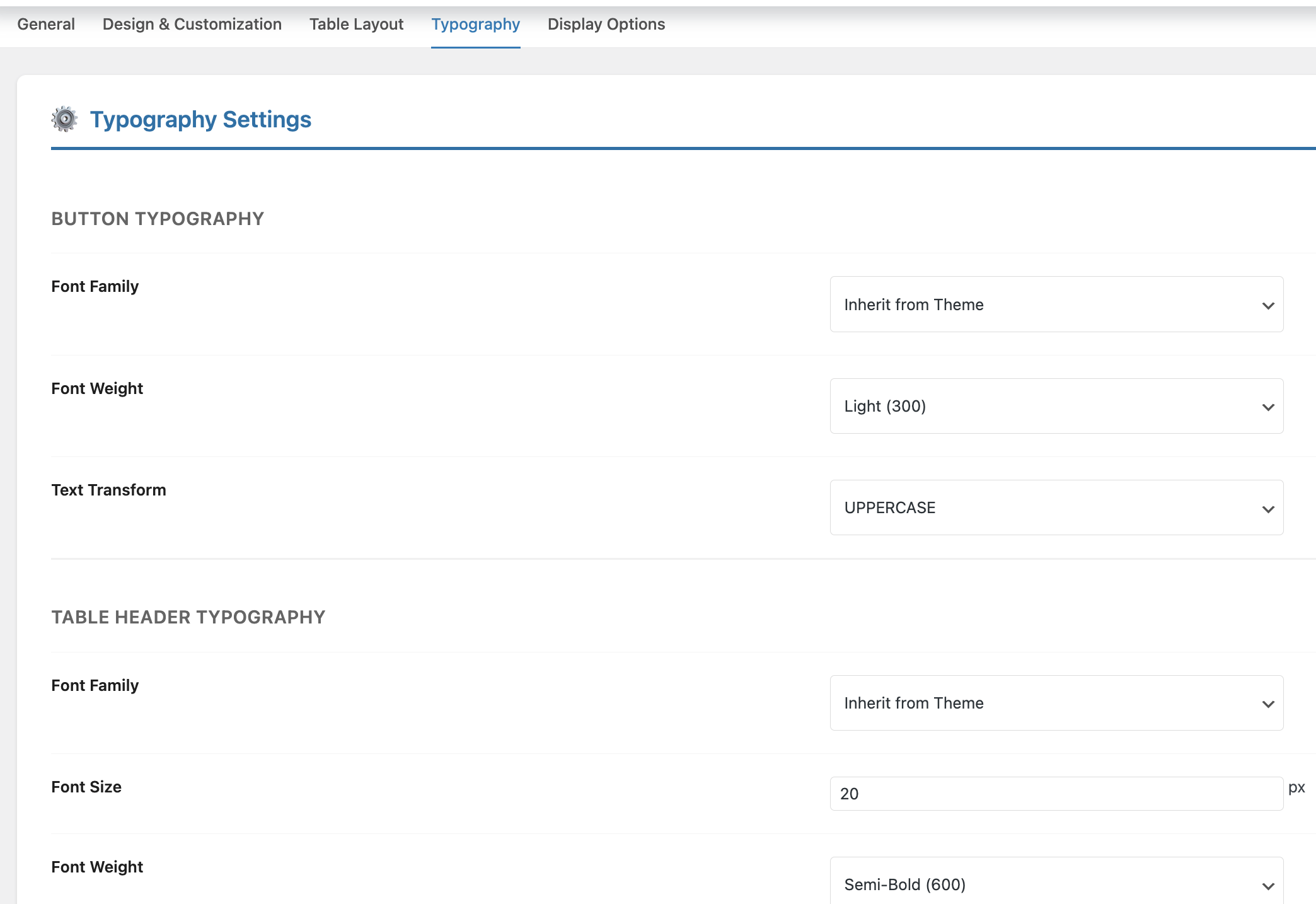 Table Header Typography